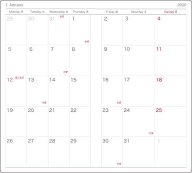 ページ構成 | 月間スケジュール・アドレス・メモ・年間プラン | |